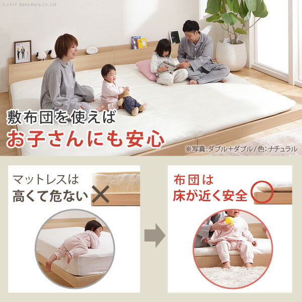 ベッド 布団 セット 家族揃って布団で寝られる連結ローベッド 〔ファミーユ〕 ダブルサイズ 同色2台+国産3層敷布団セット ファミリーベッド 親子ベッド 木製 宮付き コンセント 布団セット 敷き布団 防ダニ マットレス不要