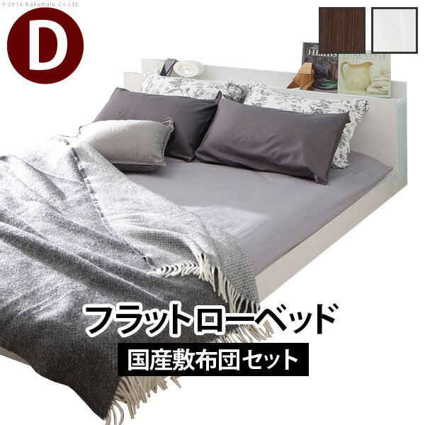 ベッド 布団 セット 敷布団でも使えるフラットローベッド 〔カルバンフラット〕 ダブルサイズ+国産3層敷布団セット ベッドフレーム 木製 宮付き コンセント 布団セット 敷き布団 日本製 防ダニ 抗菌 防臭 吸汗 速乾 軽量 マットレス不要 ダブル