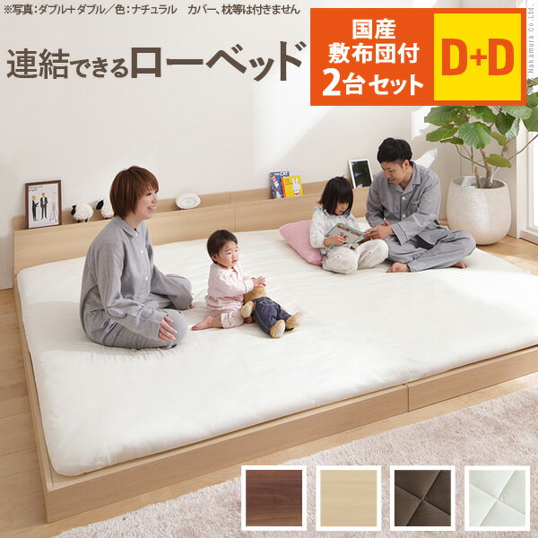 ベッド 布団 セット 家族揃って布団で寝られる連結ローベッド ダブルサイズ 同色2台+国産3層敷布団セット ファミリーベッド 親子ベッド 木製 宮付き コンセント 布団セット 敷き布団 防ダニ マットレス不要(インテリア おしゃれ おすすめ 家具 人気)(キャッシュレス5%還元)