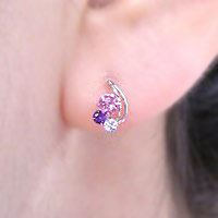 ■全長7×5mm・ピンクトルマリン直径3mm・アメジスト直径2mm・タンザナイト直径2mm■材質K14WG■ポスト10mm■オーダーメイドのためお届けには20-30日程度かかります。