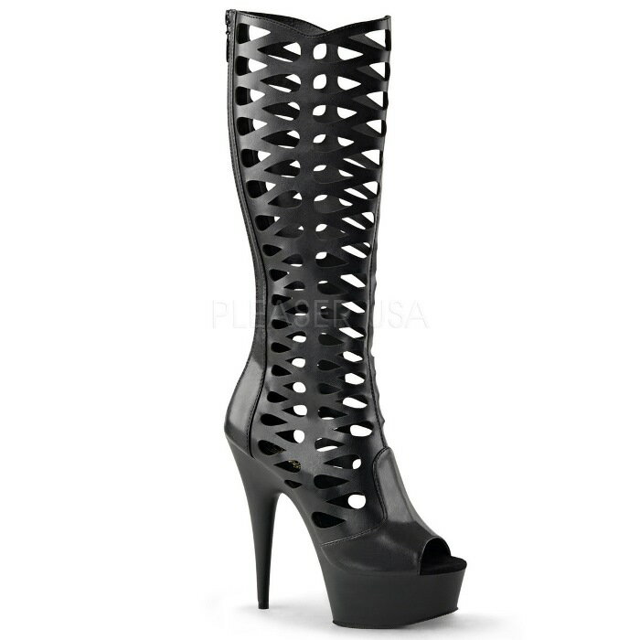 取寄 靴 送料無料 オープントゥ 網目デザイン 厚底ロングブーツ ジッパー付き 15cmピンヒール 黒ブラックつや消し Pleaserプリーザー 大きいサイズあり イベント 仮装 女装 男装 パーティ- ハロウィン コスプレ