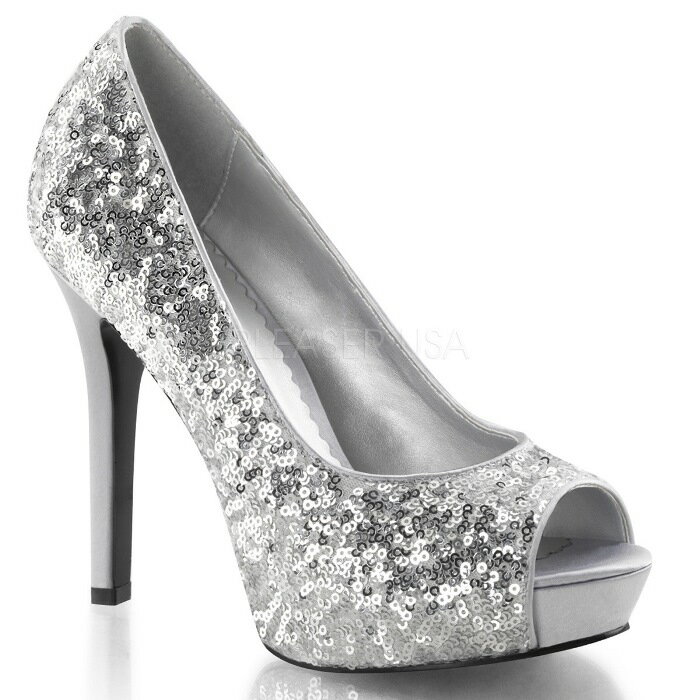 取寄 靴 送料無料 オープントゥ きらきらスパンコール 厚底パンプス 12cmヒール 銀シルバースパンコール Pleaserプリーザー 大きいサイズあり イベント 仮装 女装 男装 パーティ- ハロウィン コスプレ