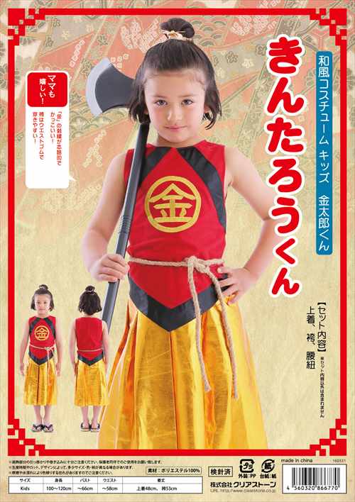 ◆【和風コス キッズ 金太郎くん】ありそうでなかった金太郎のコスチューム!胸の’金’の刺繍が本格的で高級感があります。袴風スカートはウエストゴムで着脱簡単。【ハロウィン衣装/ハロウィンコスプレ】※小型宅配便発送不可【RCP】